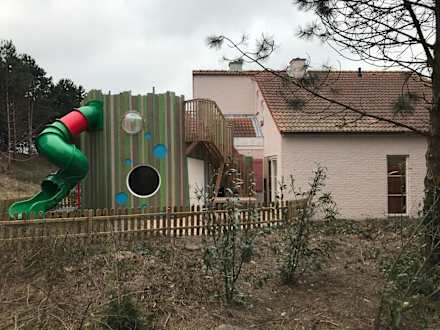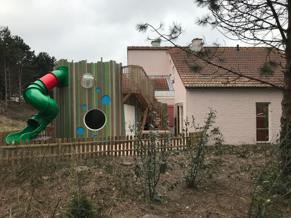 Dies ist eins der Bungalows mit eigener Burg/Rutschen und kleinen Spielplatz.