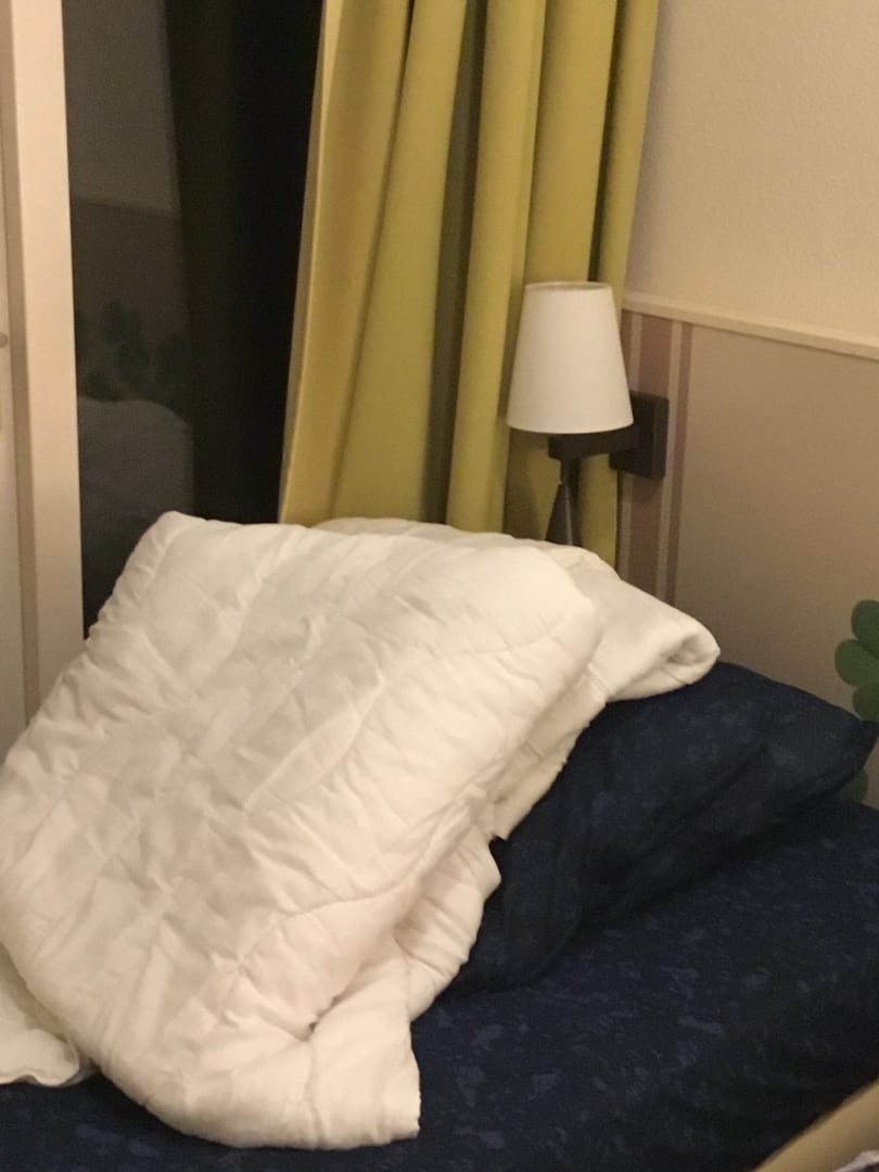Elternschlafzimmer so klein, dass das Bett direkt vor der Balkontür steht