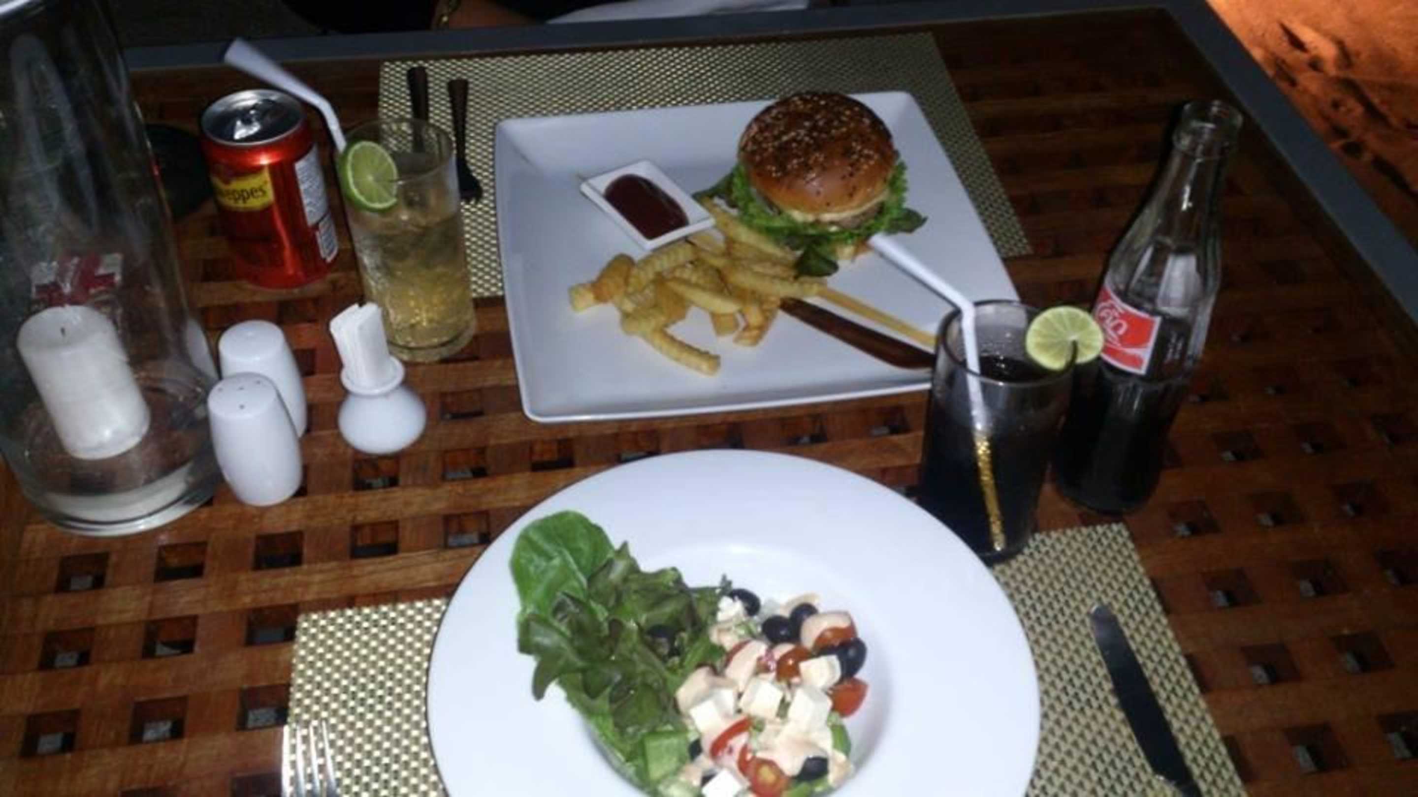 Salat Kreta und Hambuger im Restaurant