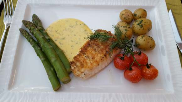 Hauptgang beim Abendmenue: Zanderfilet mit grünem Spargel