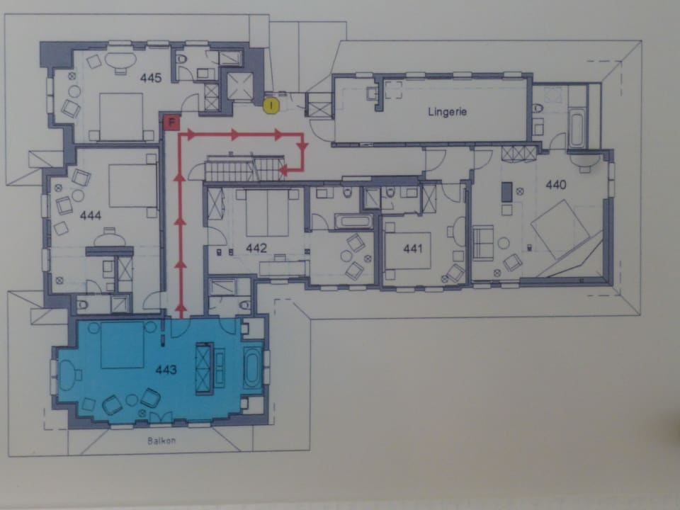 Grundriss 4. Stock mit Belle-Epoque-Zimmer Nr. 443