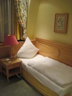 Das Bett im Einzelzimmer ist nicht besonders groß.