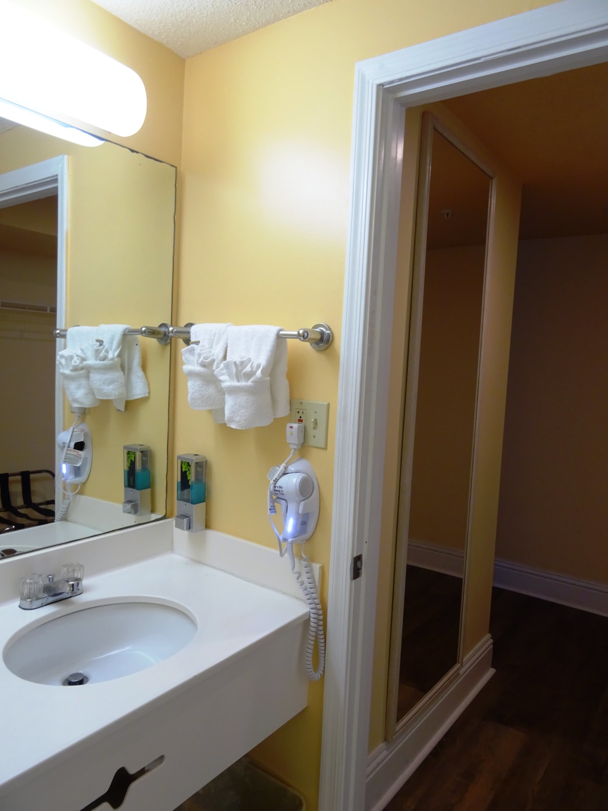 Bad mit Waschblock, Fön, Blick in Flur