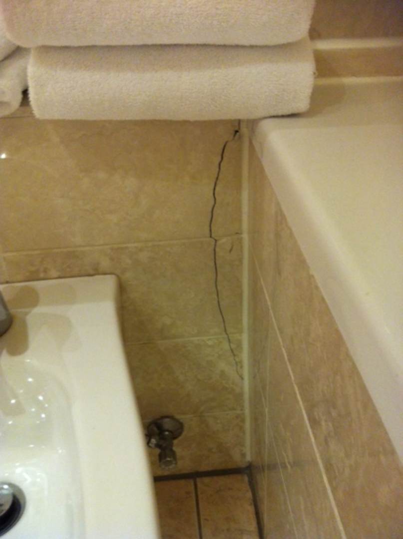 Einer von mehren gut sichtbaren Rissen im Bad, die nicht von heute sind