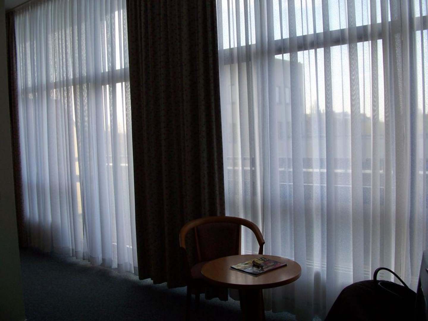 Hinter den Gardinen ist der Riesen Balkon