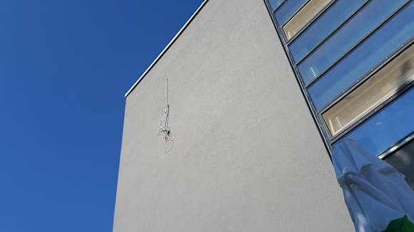 An jeder Seite des Gebäudes hängen irgendwelche Kabeln herunter ... nicht isoliert!