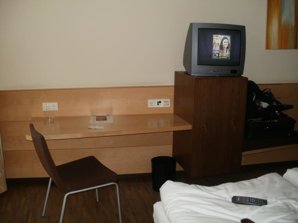 Schreibtisch, TV mit daruntergelegener Minibar