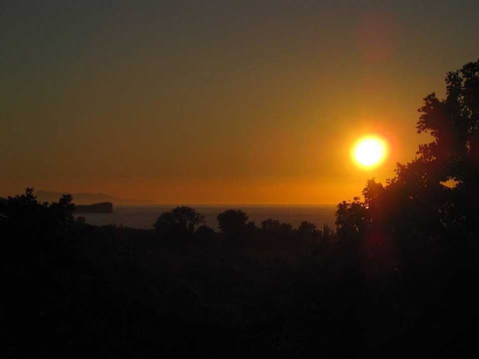 Sonnenuntergang mit Meerblick vom Balkon aus.