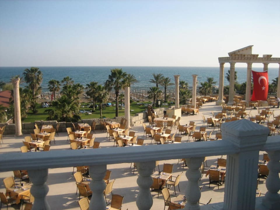 Aussicht auf die Terrasse zur Liegewiese und Strand