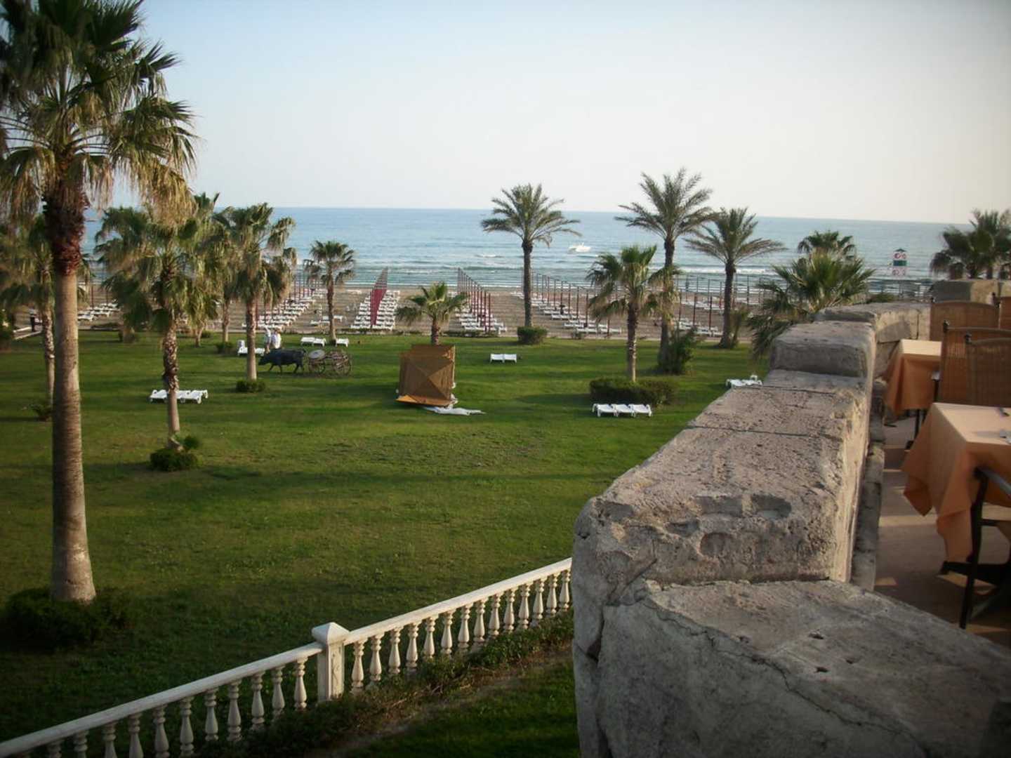 Blick von der Terrasse in Garten und Strand