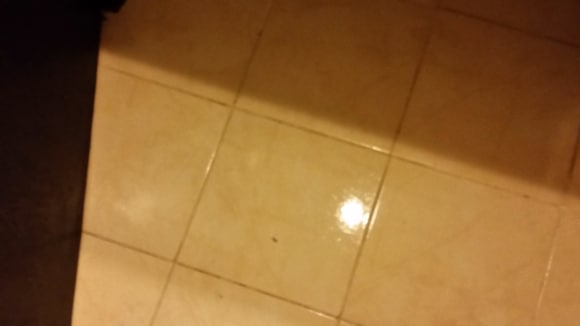 BadFRISCH NACH DEM PUTZEN DES BADEZIMMERS, DRECK AUF DEM BODEN