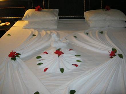 Bett Wurde am Geburtstag gegen ein kleines Trinkgeld so geschmückt.