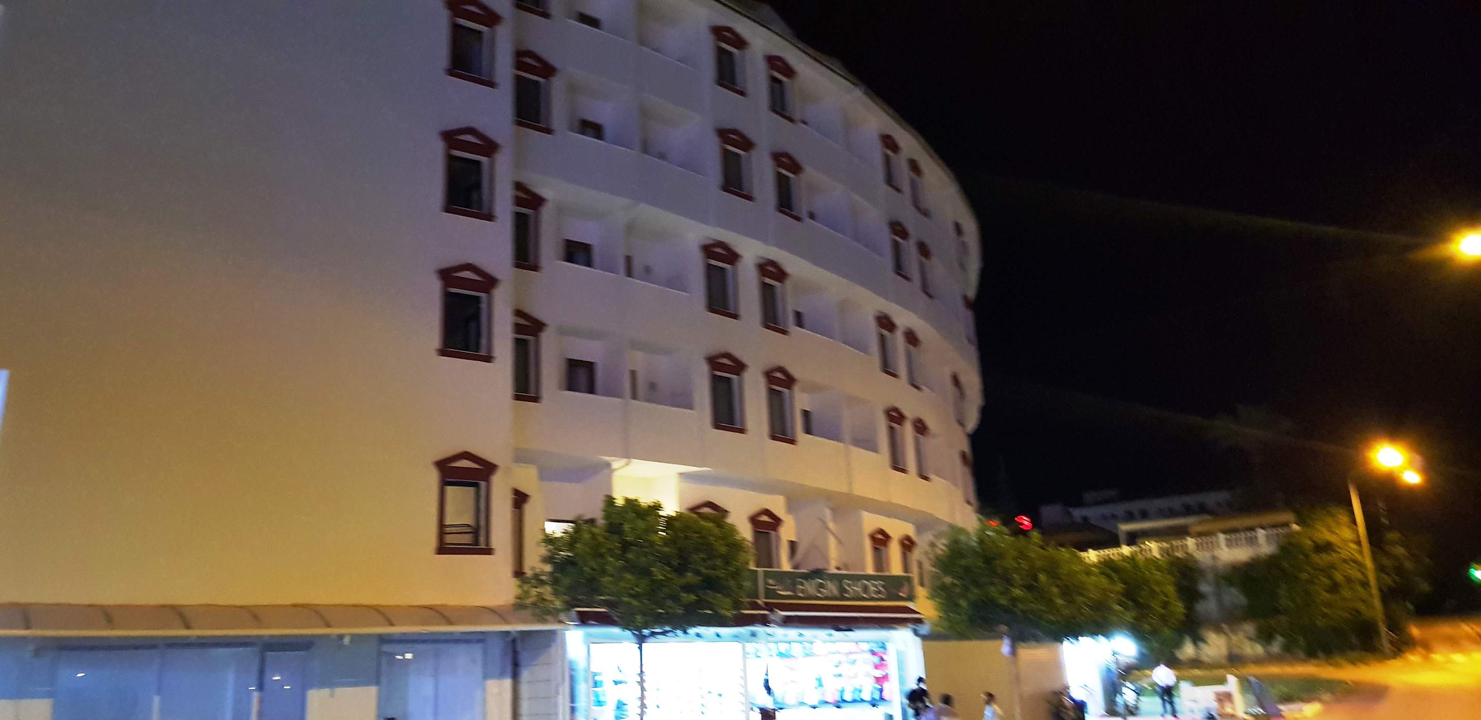Am späten Abend Rundbogen am Ende vom Hotel