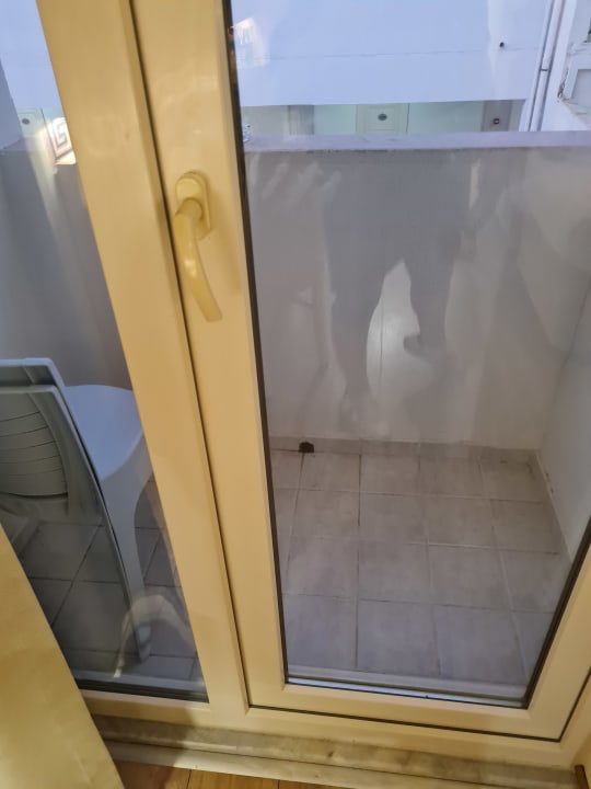 Der Balkon ist sehr mini, ich weiß nicht wieso sind die Stühle, man kann die nie nutzen