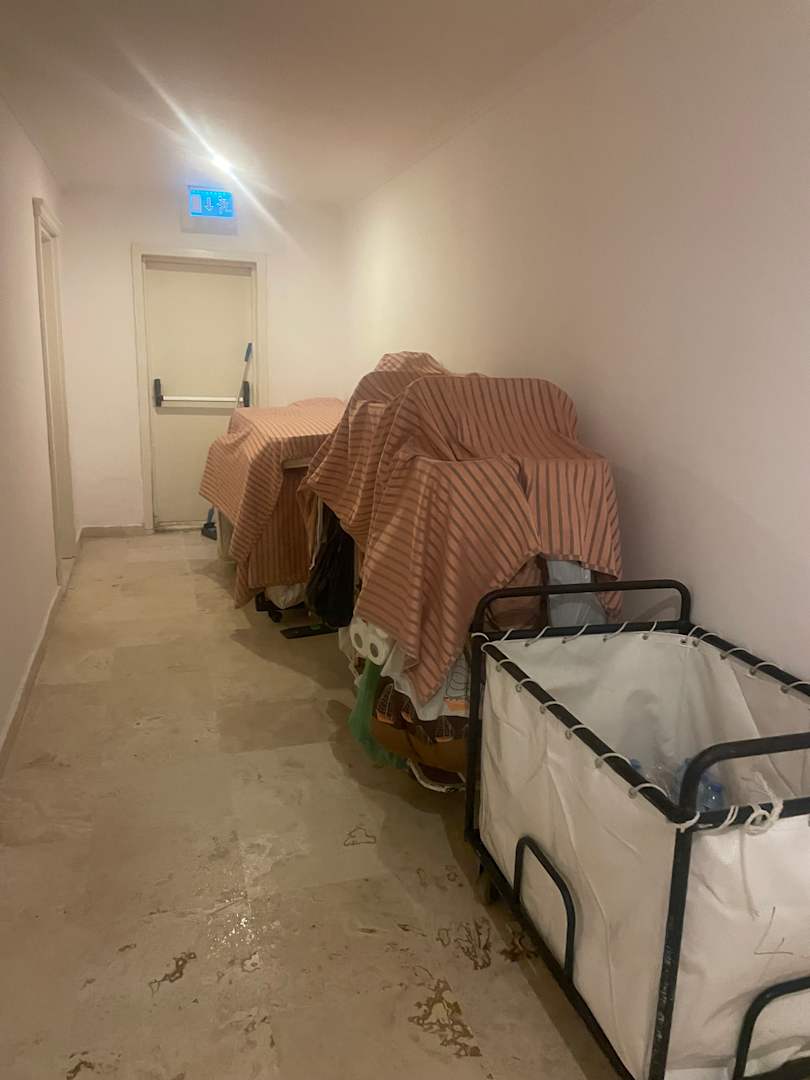 ZimmerLinks hinten unsere Zimmertür, davor Putzraum auf dem Flur, geradeaus Notasugangstür mit Schnur zugebunden