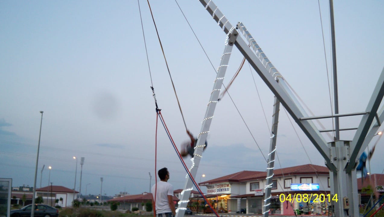 Salto am Trampolin beim Hotel