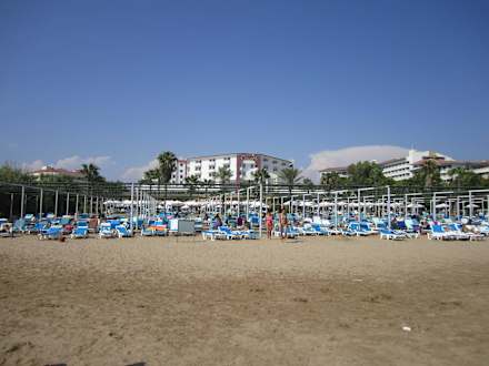 Ansicht vom Strand aus aufs Hotel