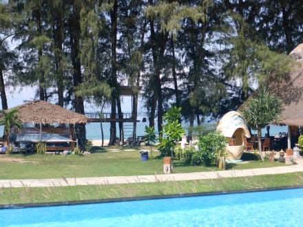 PoolPool mit Sicht zum Meer und auf der linken Seite das Massagehäuschen