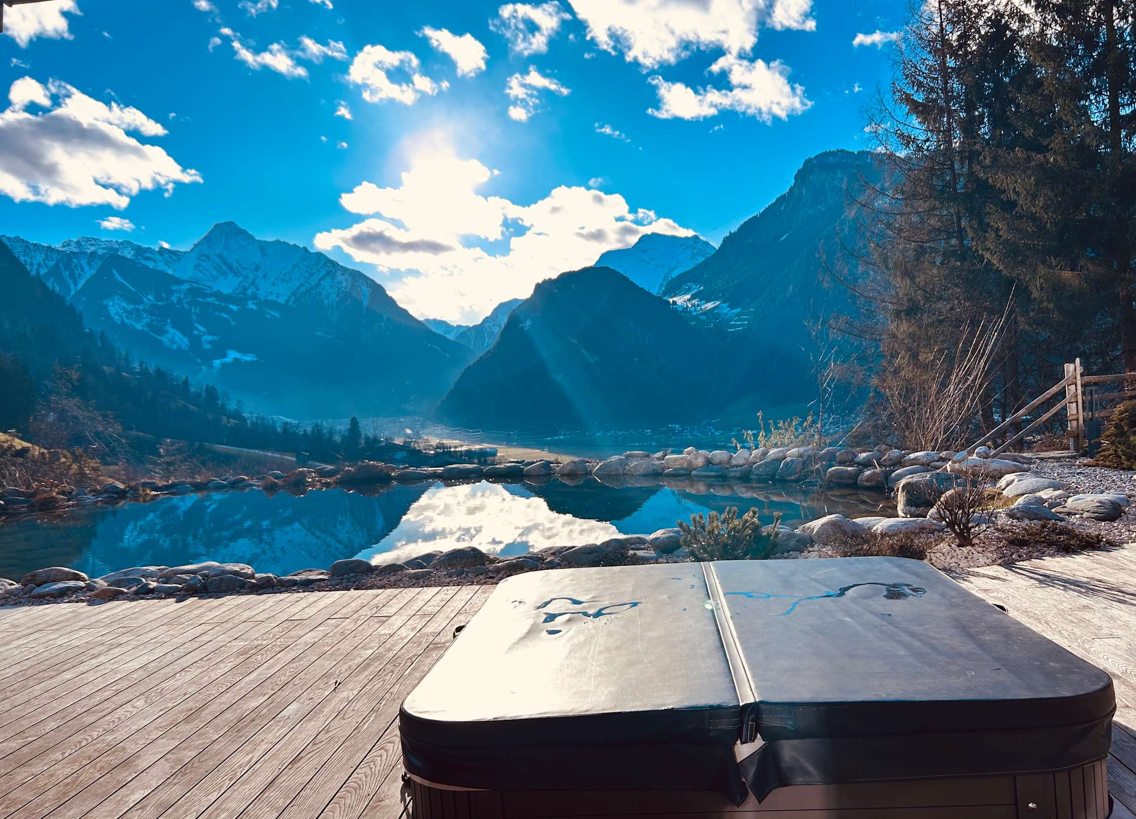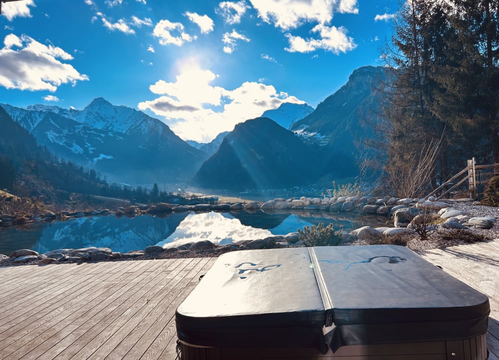 Whirlpool auf f Terrasse Chalet am Teich