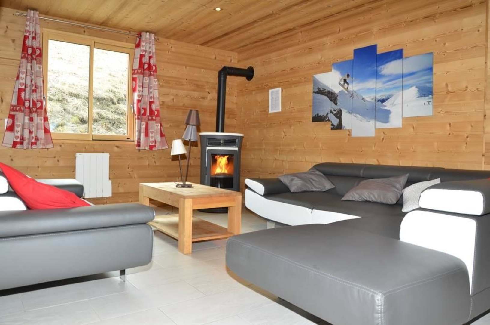 Chalets Lacuzon salon avec poele à granulés