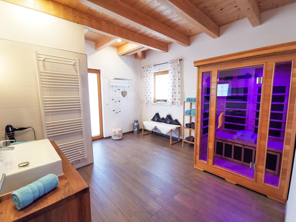 Badezimmer mit Infrarotkabine