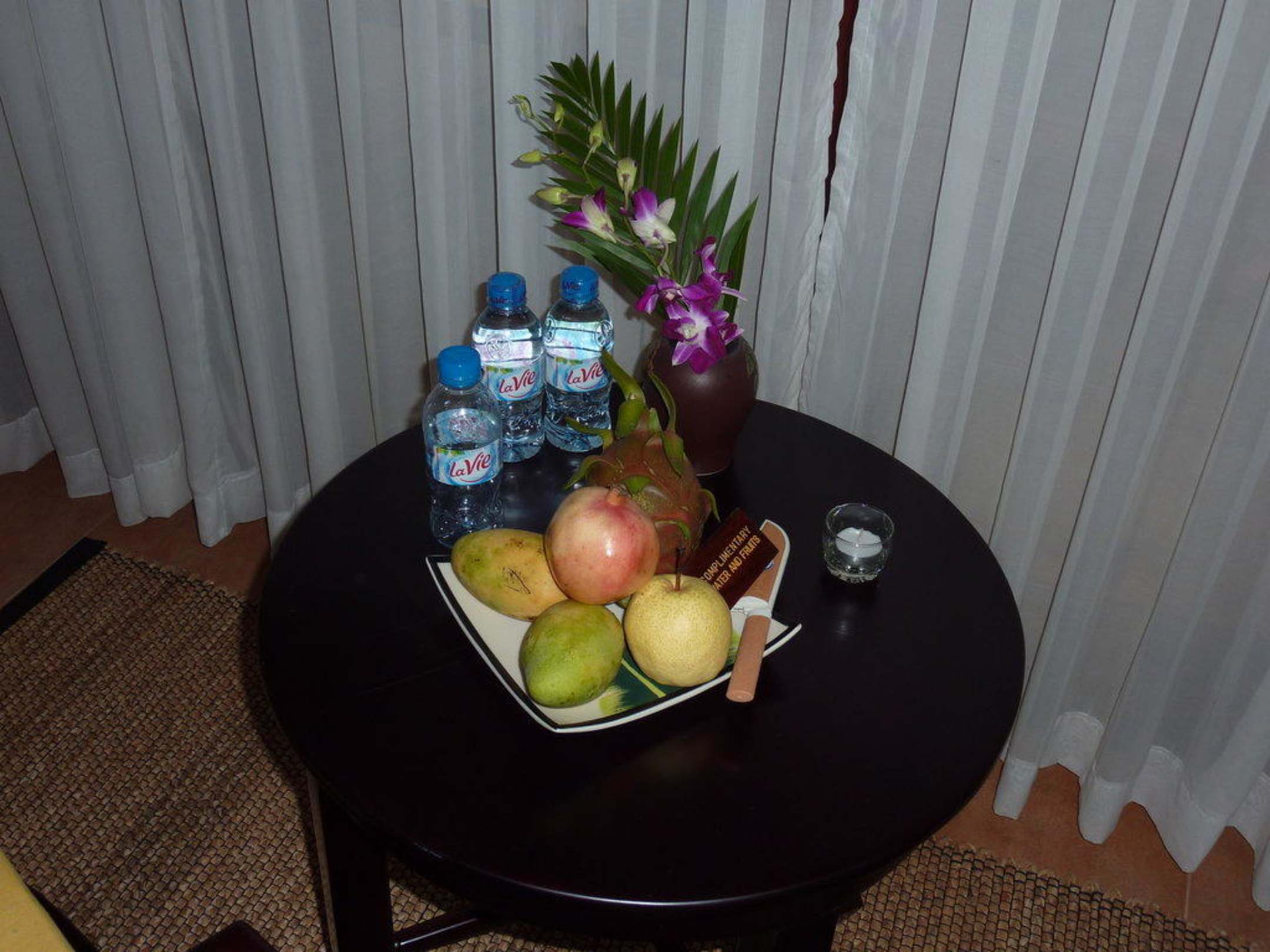 Es gibt immer frisches Obst und genug Wasser in den Zimmern.