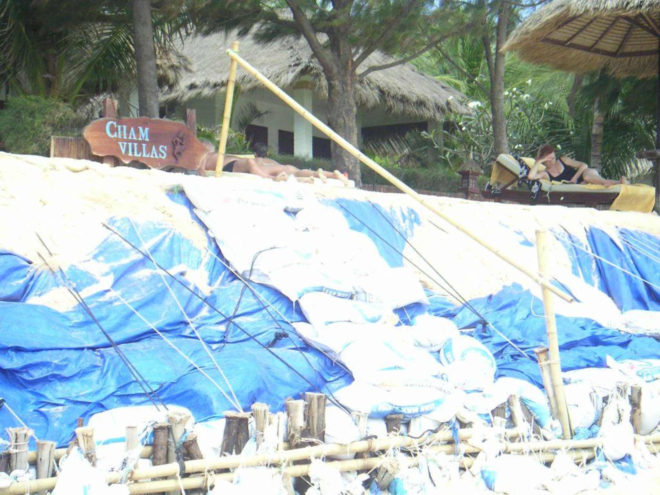 Schöner Strand!So sieht es heute leider am "Privatstrand" der Cham Villas aus. Schade eigentlich. Der Strand ist für Normalos nicht zu gebrauchen, nur den Kitesurfern hat das wohl eher nichts ausgemacht, im Wasser bin ich jedenfalls in 3,5 Wochen nicht gewesen, war zu ekelig durch den Müll zu waten, der übrigens ja auch von den umliegenden Hotels angeschwommen kam..