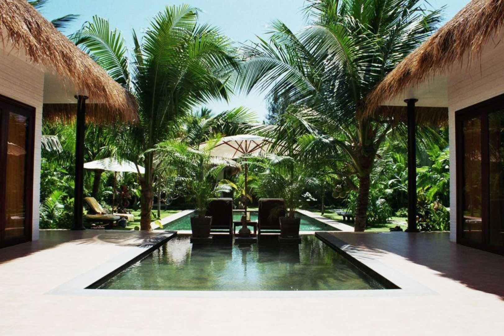 Blick in den Garten bei den Privatvillas