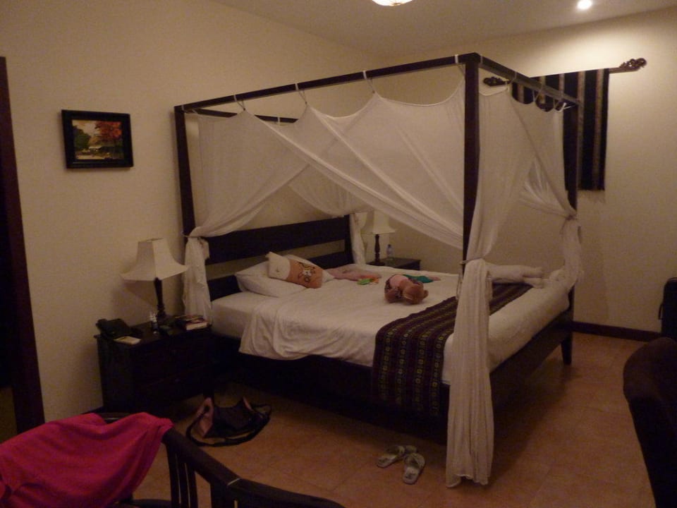 Das Bett liebevoll hergerichtet Die Decke, das BLumenarrangement und die Stofftiere wurden täglich neu ausgerichtet und dekoriert