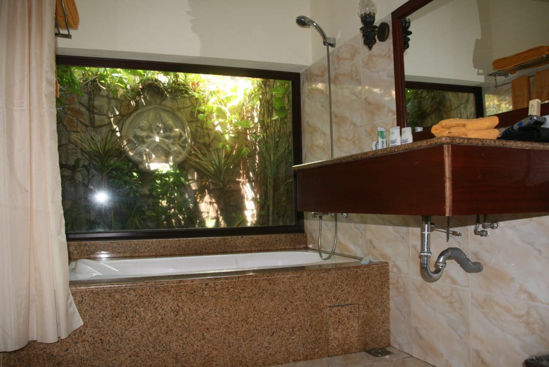 Bad mit Fenster, Nachts beleuchtet der Ausblick