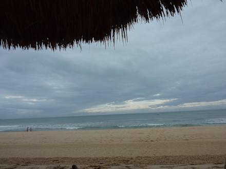 Man sieht noch den Rand des Sonnenschirmes. Es ist gerade Ebbe