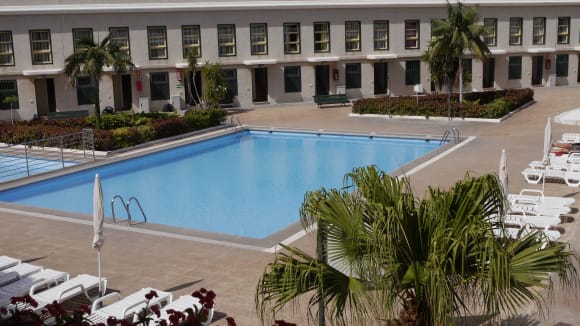 Blick von unserem Balkon auf den Pool