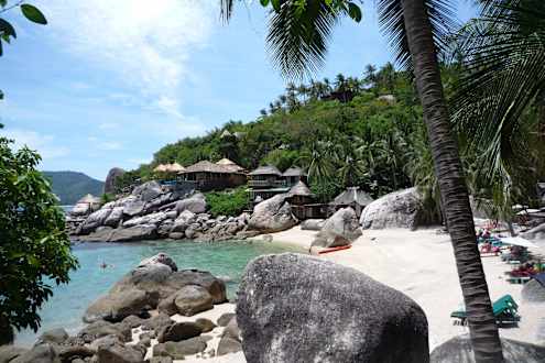 Unser Cottage vom Ende der Bucht aus