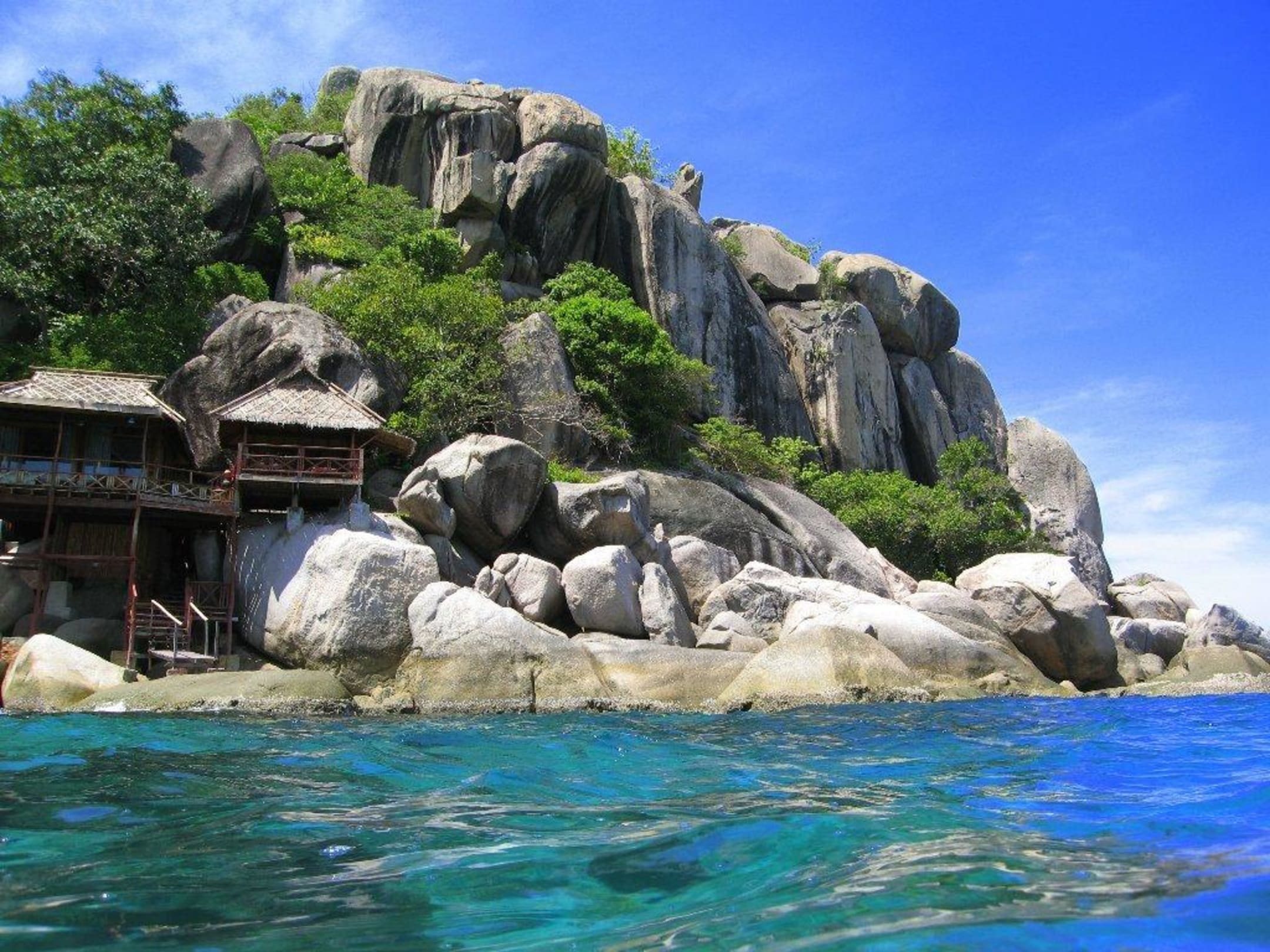 Blick vom Wasser auf die Bucht