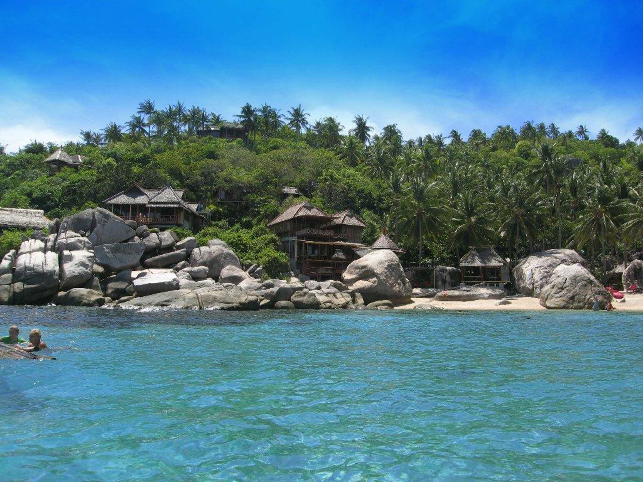 Blick vom Wasser auf die Bucht