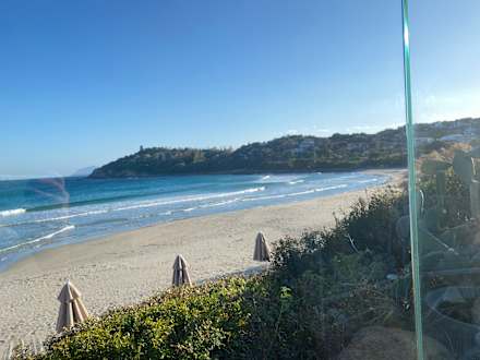 Blick auf den Strand von Hotelbar