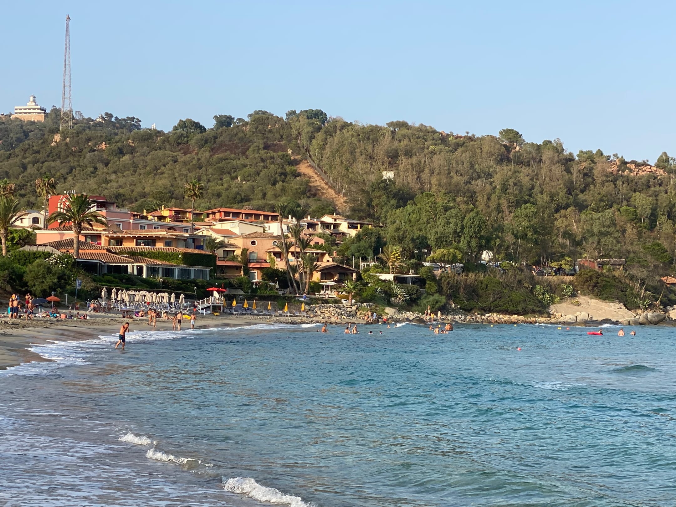 Hotel La Bitta, die hellen Sonnenschirme gehören zum Hotel