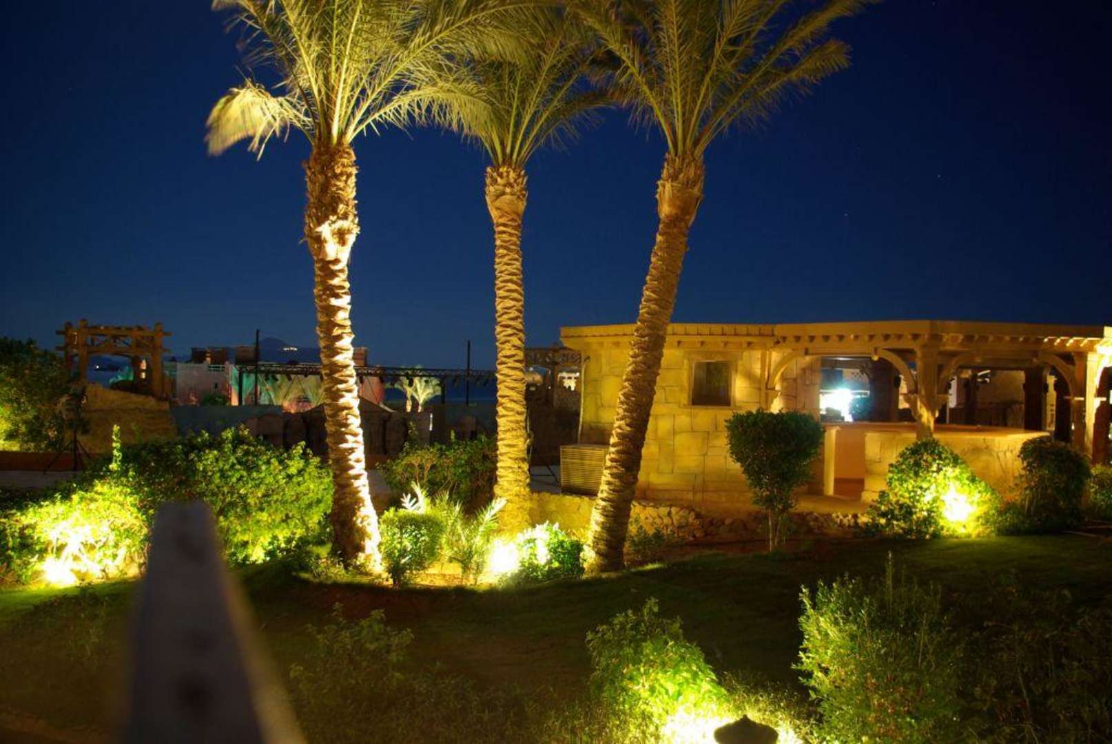 Hotelanlage am Abend