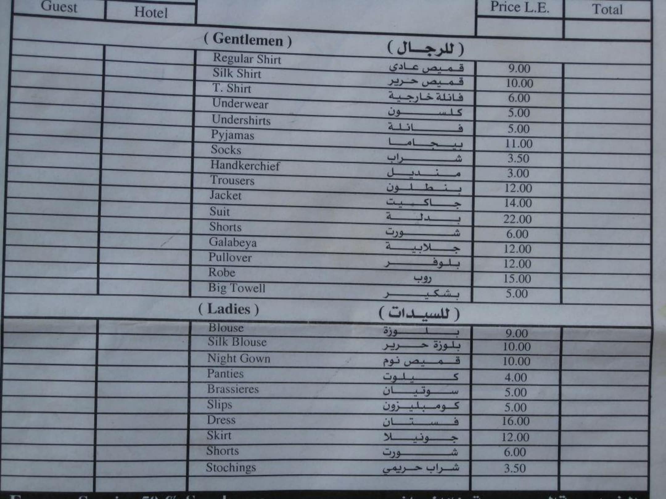 Preisliste-Wäscheservice