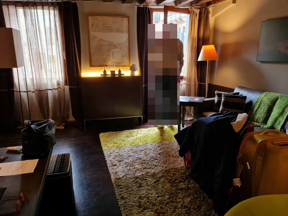 Wohnzimmer (links sieht man einen der doch sehr niedrigen Hocker beim Tisch)