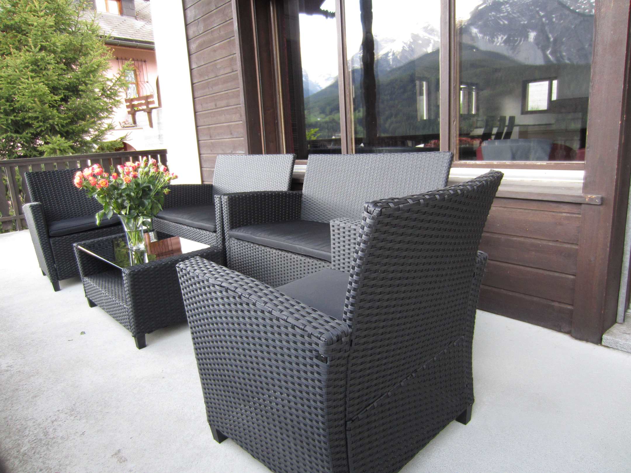27 qm Südbalkon mit Loungemöbeln und Aussicht