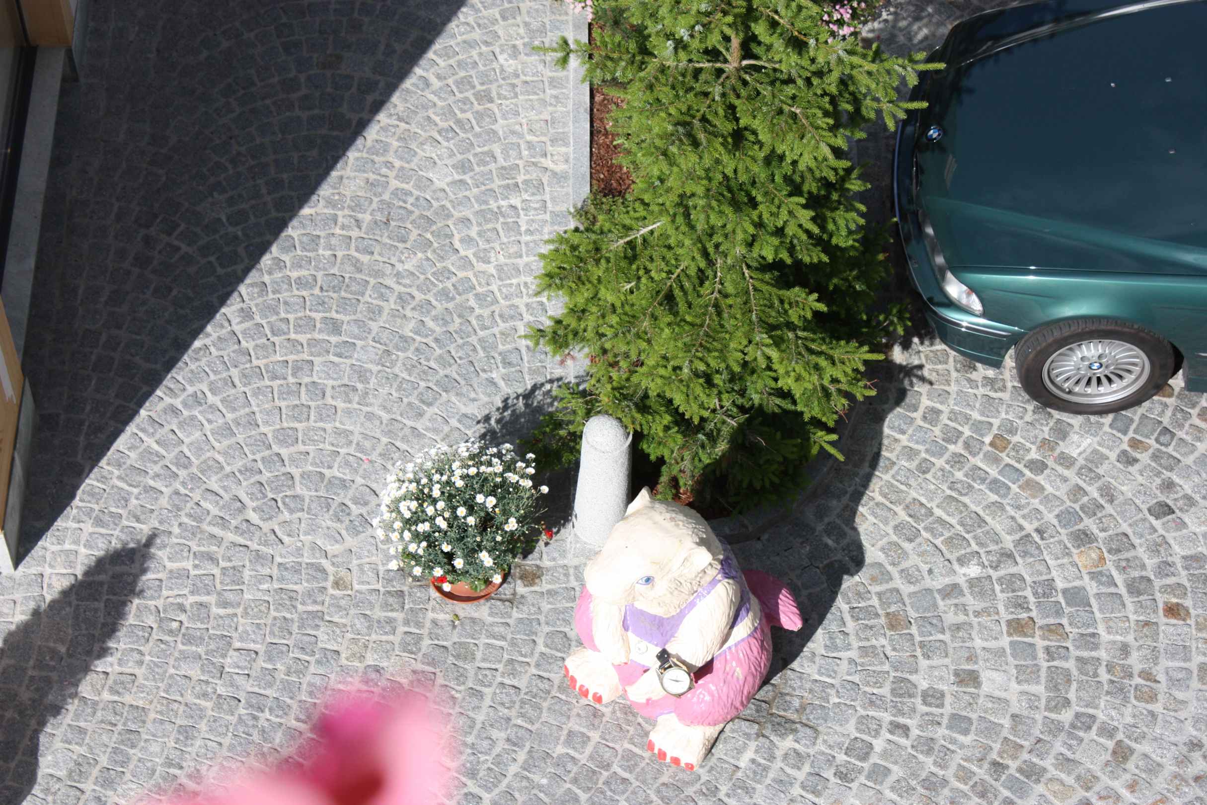 Blick vom Balkon runter auf die Einfahrt