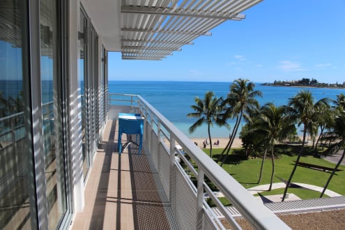 Ausblick vom Balkon zum Meer