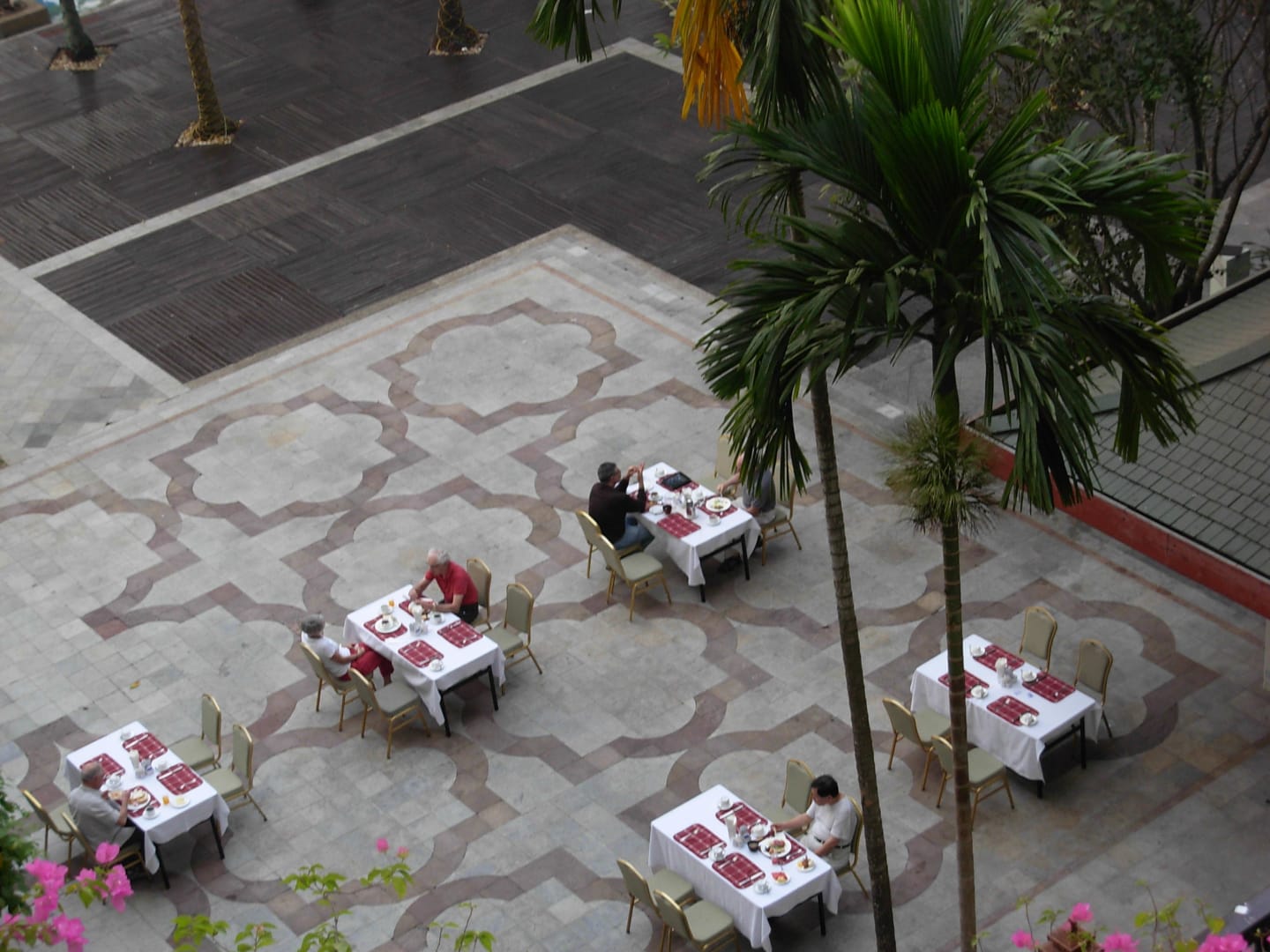 Blick auf Frühstücksterrasse