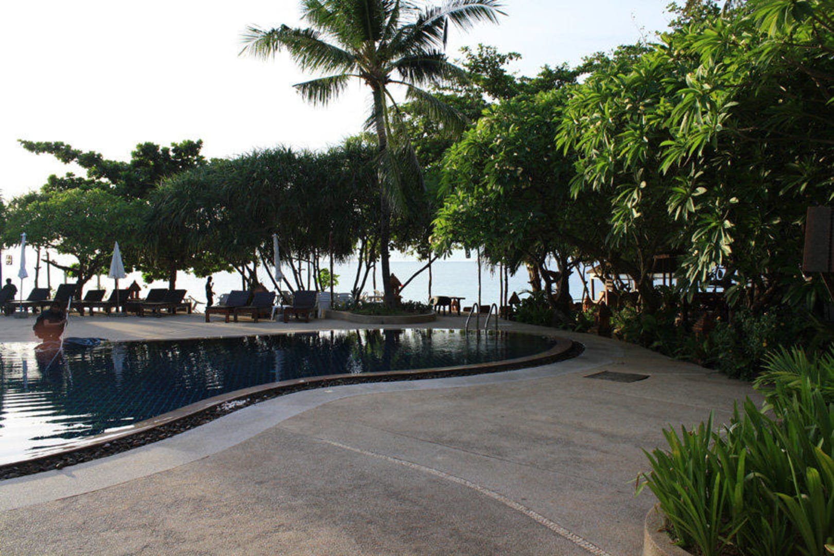 Blick auf Pool zum Frühstück