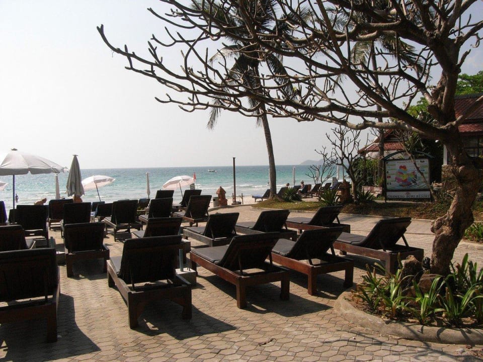 Blick über die Liegen Richtung StrandDie guten alten Holzliegen.