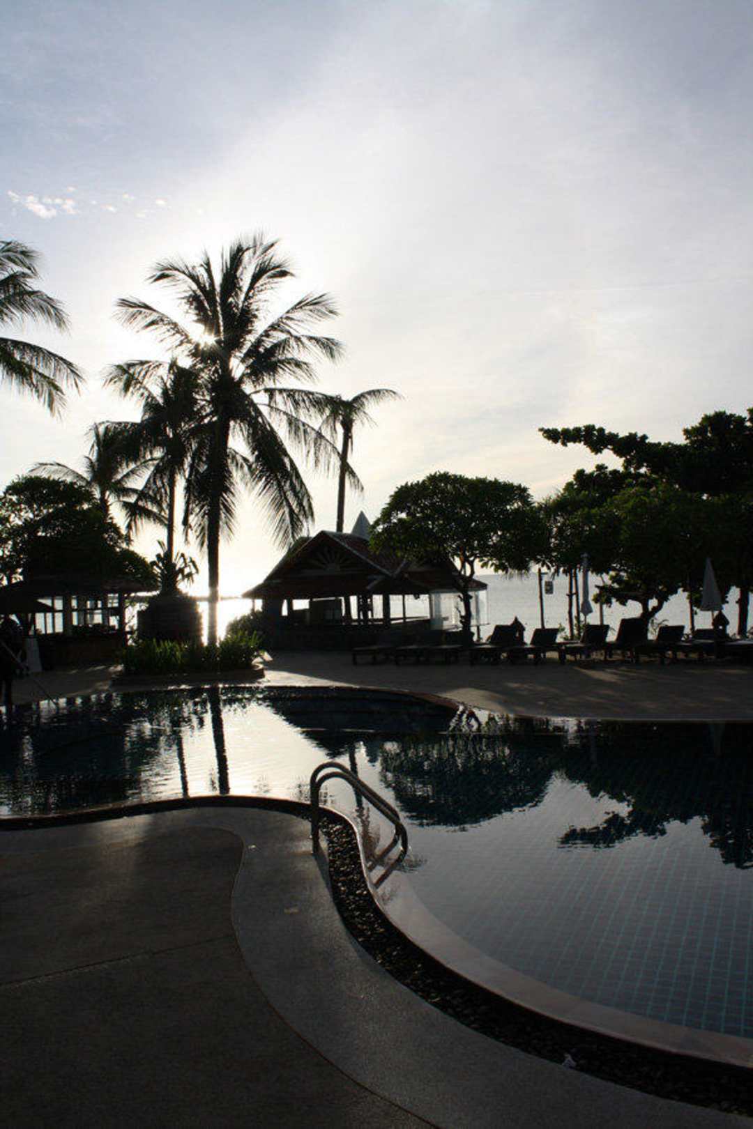Blick auf Pool zum Frühstück
