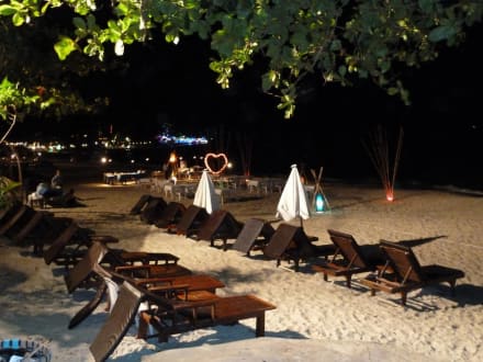 Restaurant am abendlichen Strand