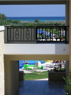 widok z pokoju 412; na dole basen, na górze morze