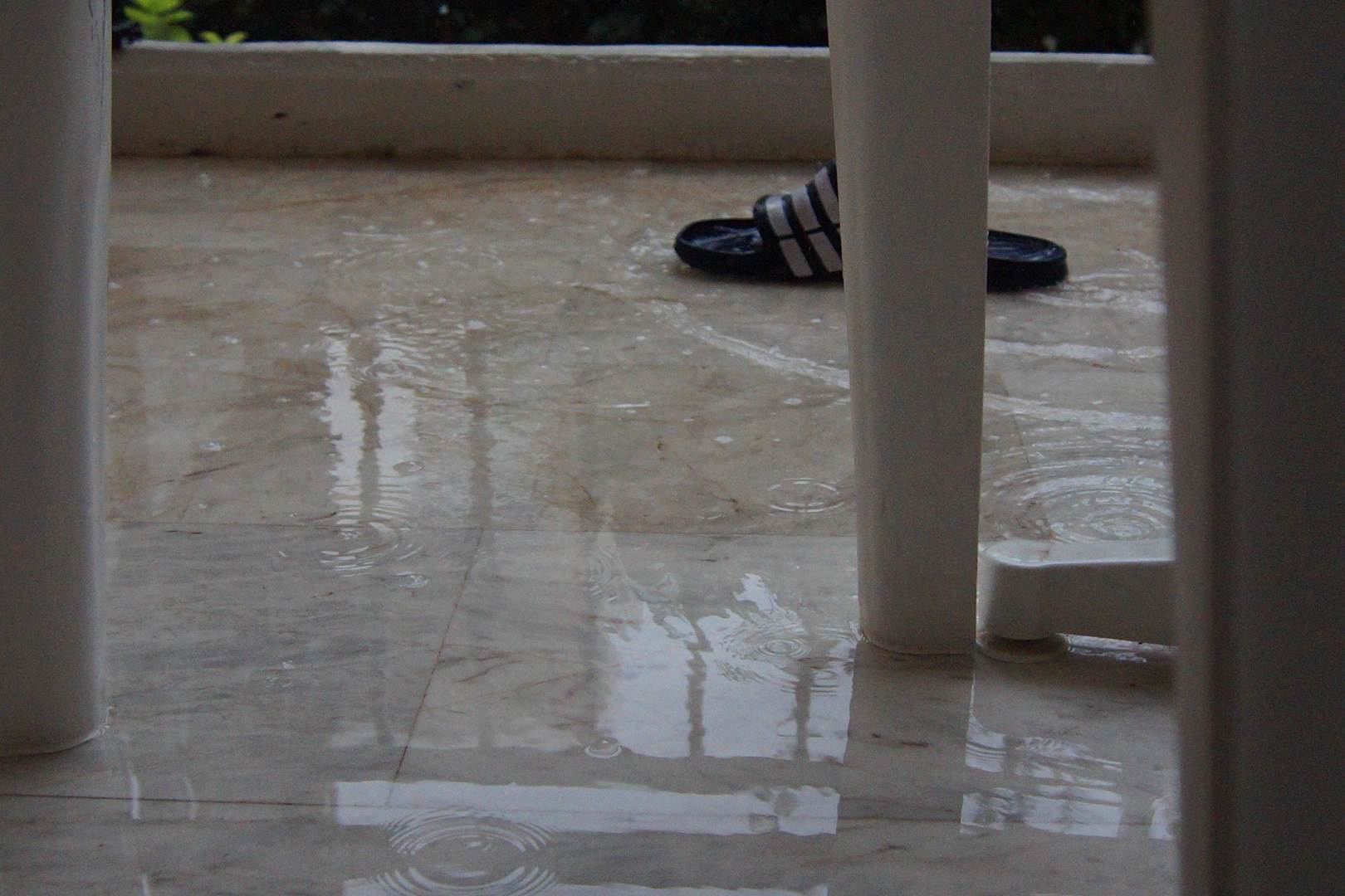 Zalany balkon po 2 godzinnym deszczu